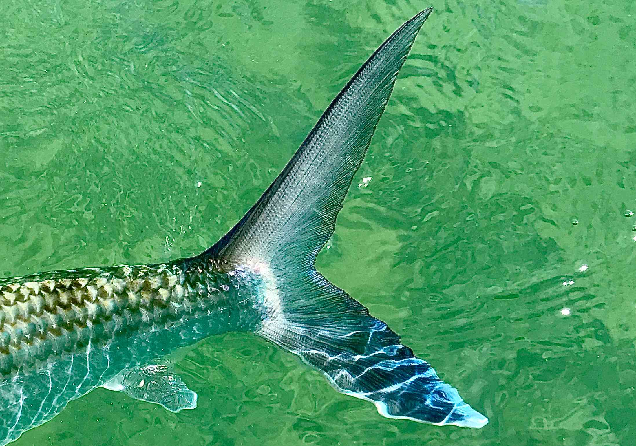 Given such titles as the Grey Ghost and Silver Bullet of the flats. Television has done a great job of depicting these gamefish with their long shiny tails high in the sky when on the flats. While at times a common occurrence; bonefish do this only when feeding from the sea-floor in a depth of water shallower than they are long. It should be known that this, more often occasional “tailing behavior” is very hard to see from a distance, especially for the untrained eye in any type of windy condition.